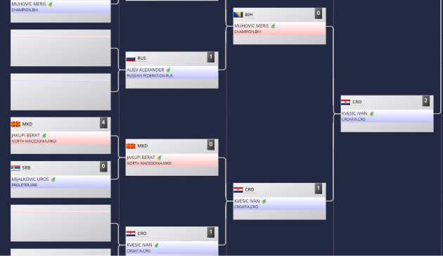 Uroš se borio jutros u 7,30 h . Poražen je od Jakupija sa 4:0. U sledećoj borbi, Jakupi je u izuzetno neizvesnom meču, poražen sa 1:0 od Ivana Kvesića, koji je u trećem kolu savladao Juldaševa Daniara iz Kazahstana sa 2:1 i plasirao se u polufinale.