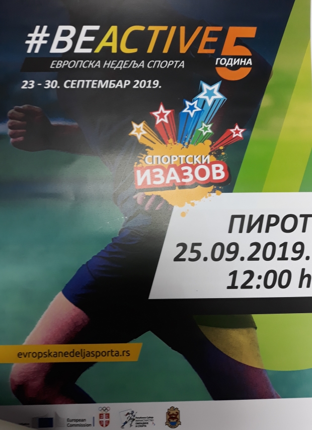 Pirot je odlukom Olimpijskog komiteta Srbije, uvršten u grupu od osam gradova u Srbiji, u kojima se, počevši od danas do 30. septembra, obeležava Evropska nedelja sporta.