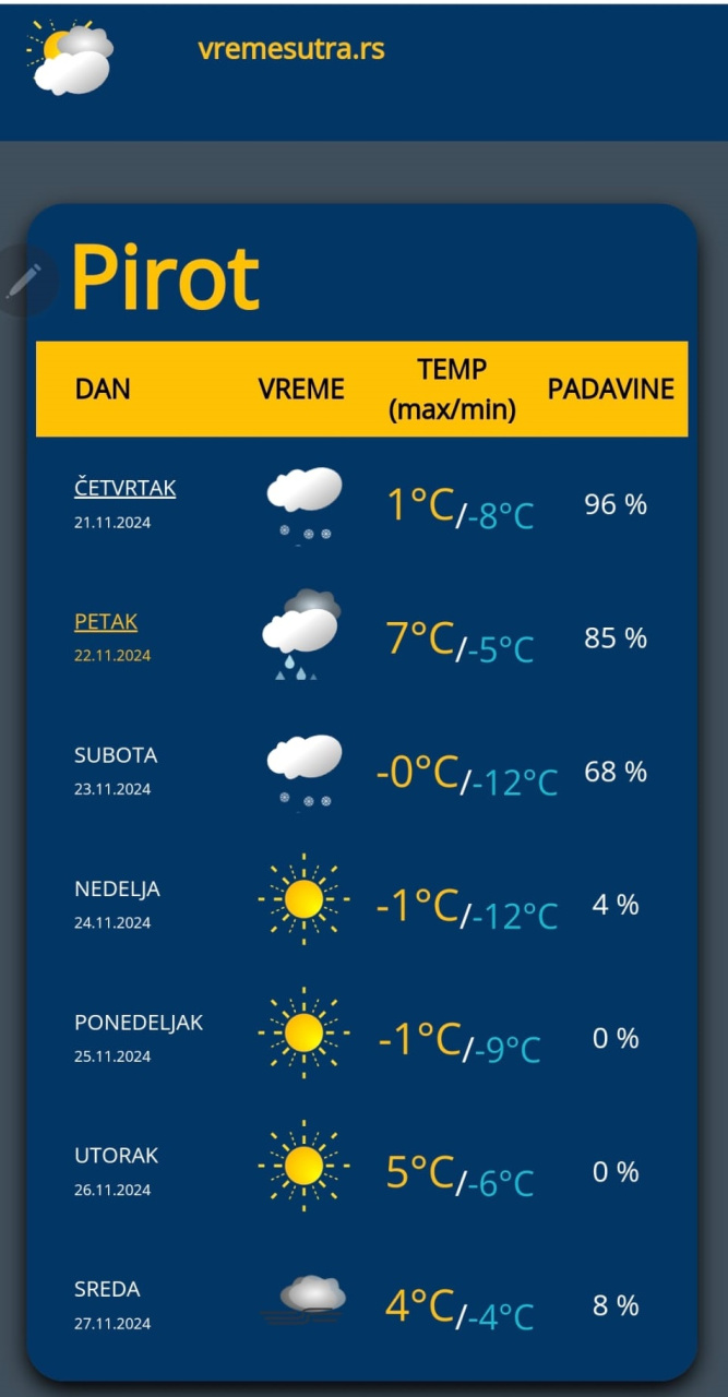 Eto to je meteorološki izveštaj, raport. Danas je četvrtak, 21. novembar!