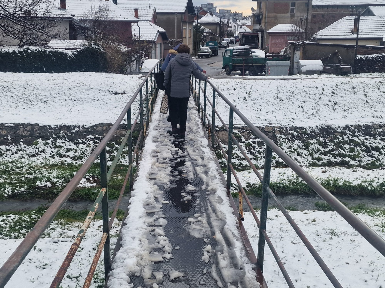 Klizav most na Gradašničkoj, neke žene isred mene su jedva prošle. Zatim Gradašnička reka, Kej, drvoredi, Sunce koje traži prolaz do nas, Kej sa mosta. Dalje, Knjaza Miloša, Trg i... to je to.