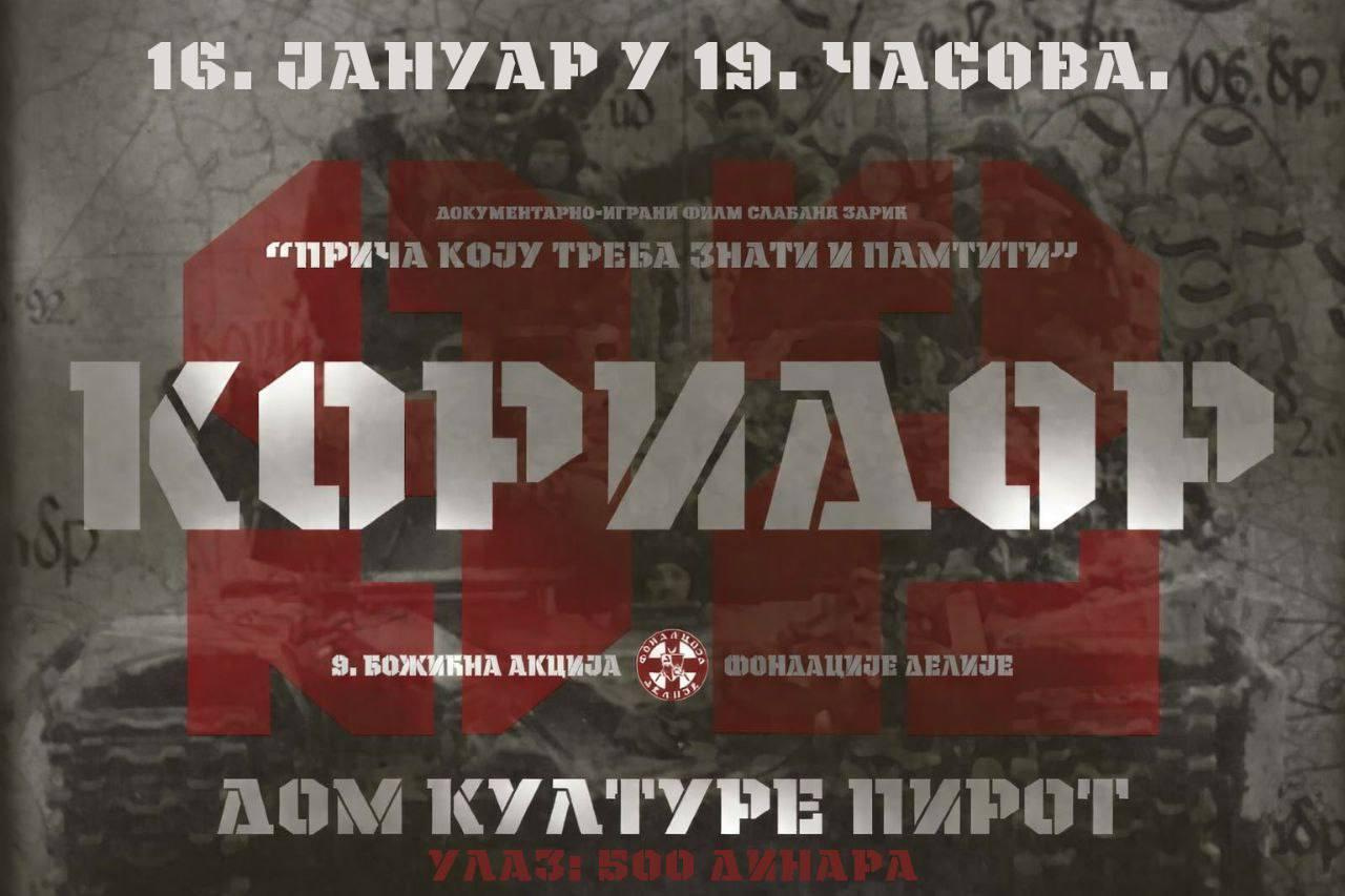 U petak, 16. januara u 19 časova, sala Doma kulture u Pirotu biće mesto projekcije filma "Koridor 92".