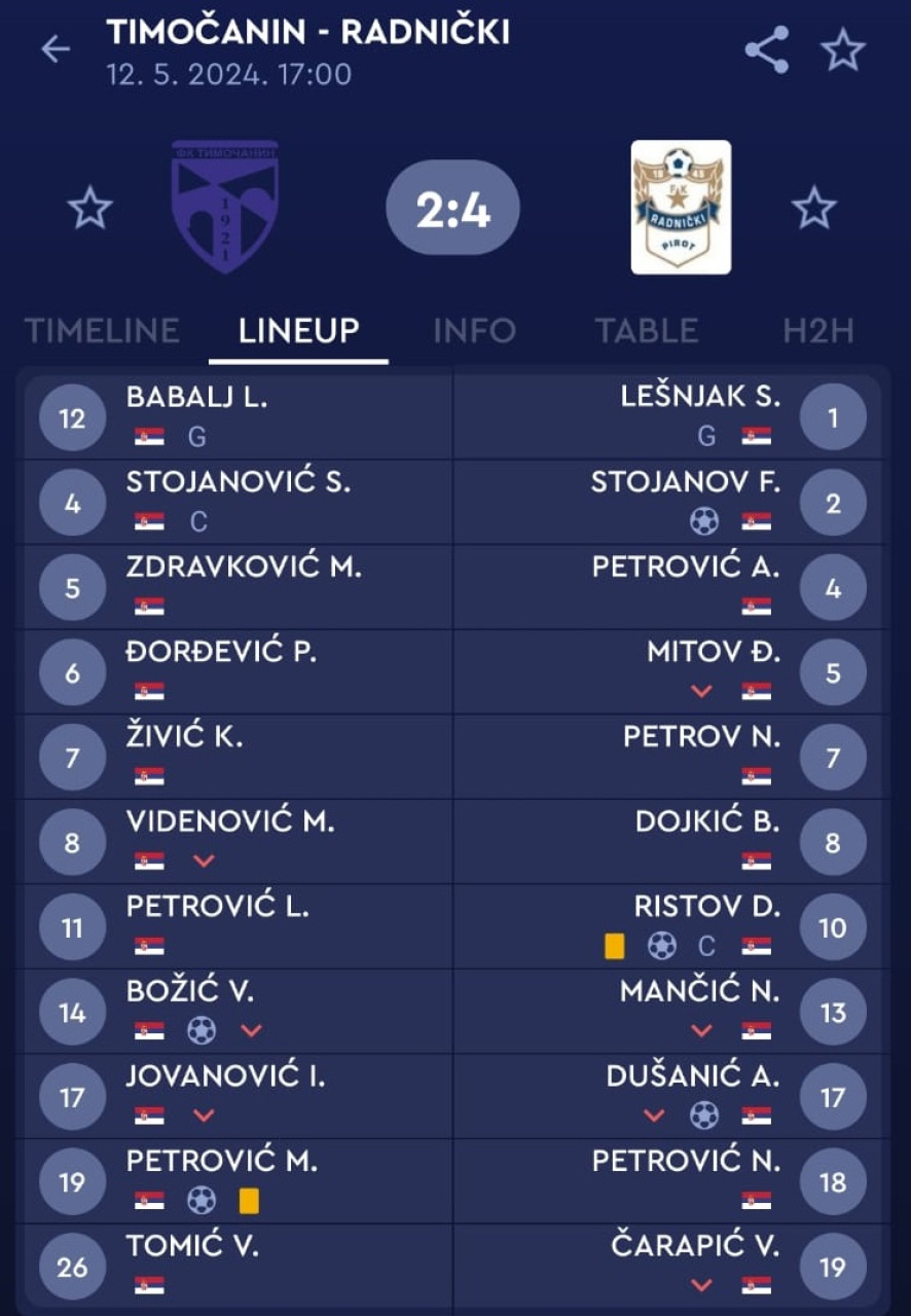Pirot: Timočanin - Radnički 2:4