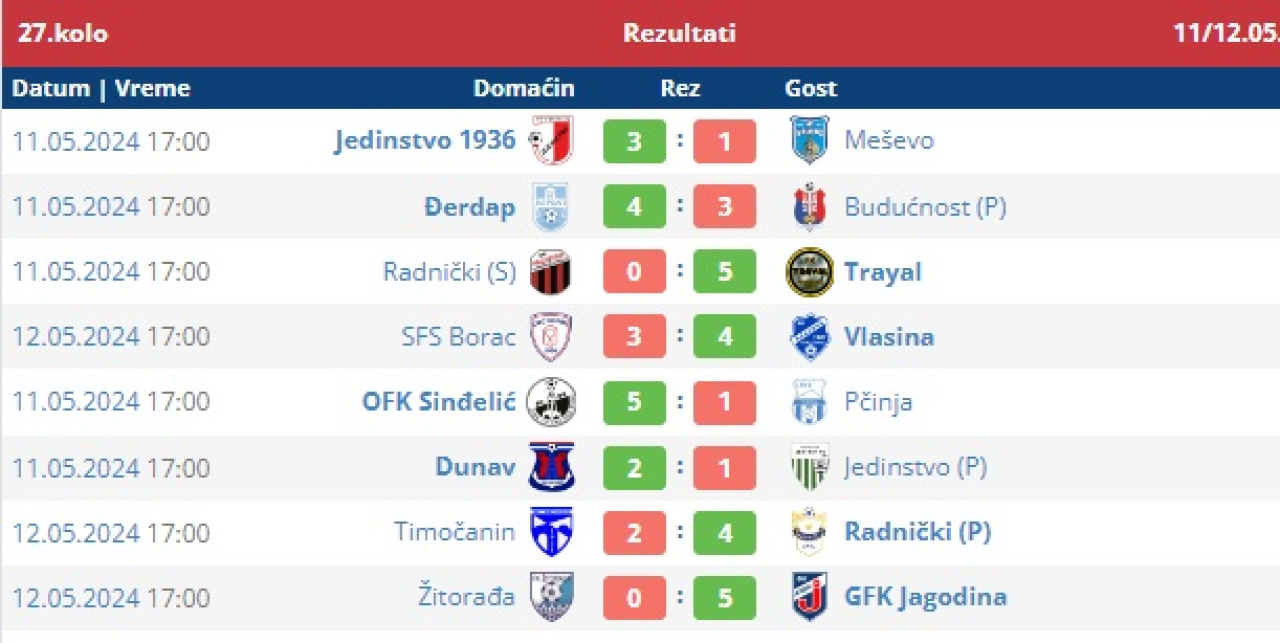 18. apr 2026. 13:36 Srpska liga Istok, 22. koloPonedeljak, 20. april, 16:30Paraćin: Jedinstvo - RadničkiNa zahtev domaćina da se utakmica pomeri za ponedeljak, Stručni štab Radničkog, kao pravi sportski ...