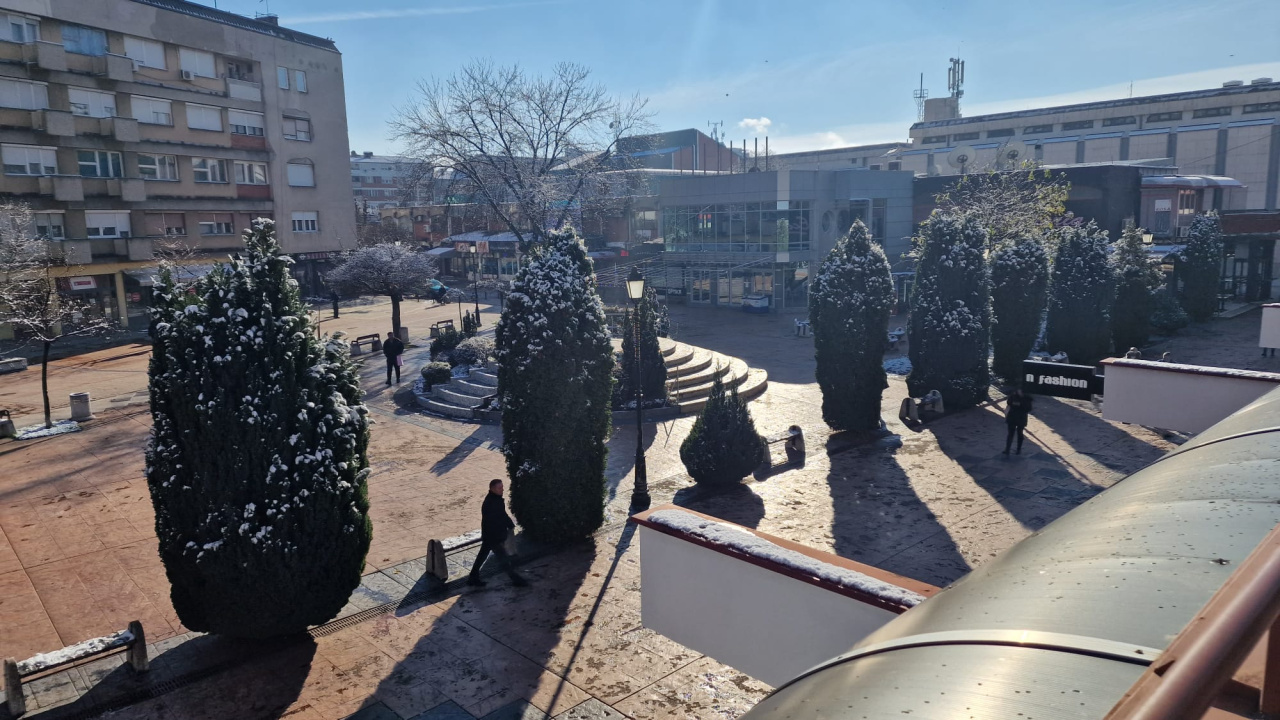Danas smo na Trgu videli radnike Komunalca kako su skidali prvi sneg sa jelki i ukrasnih žbunova.