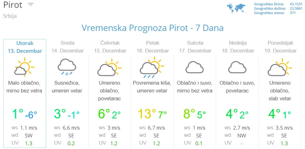 Evo podataka zabeleženih oko 13 h u Meteostanici u Dimitrivgradu: