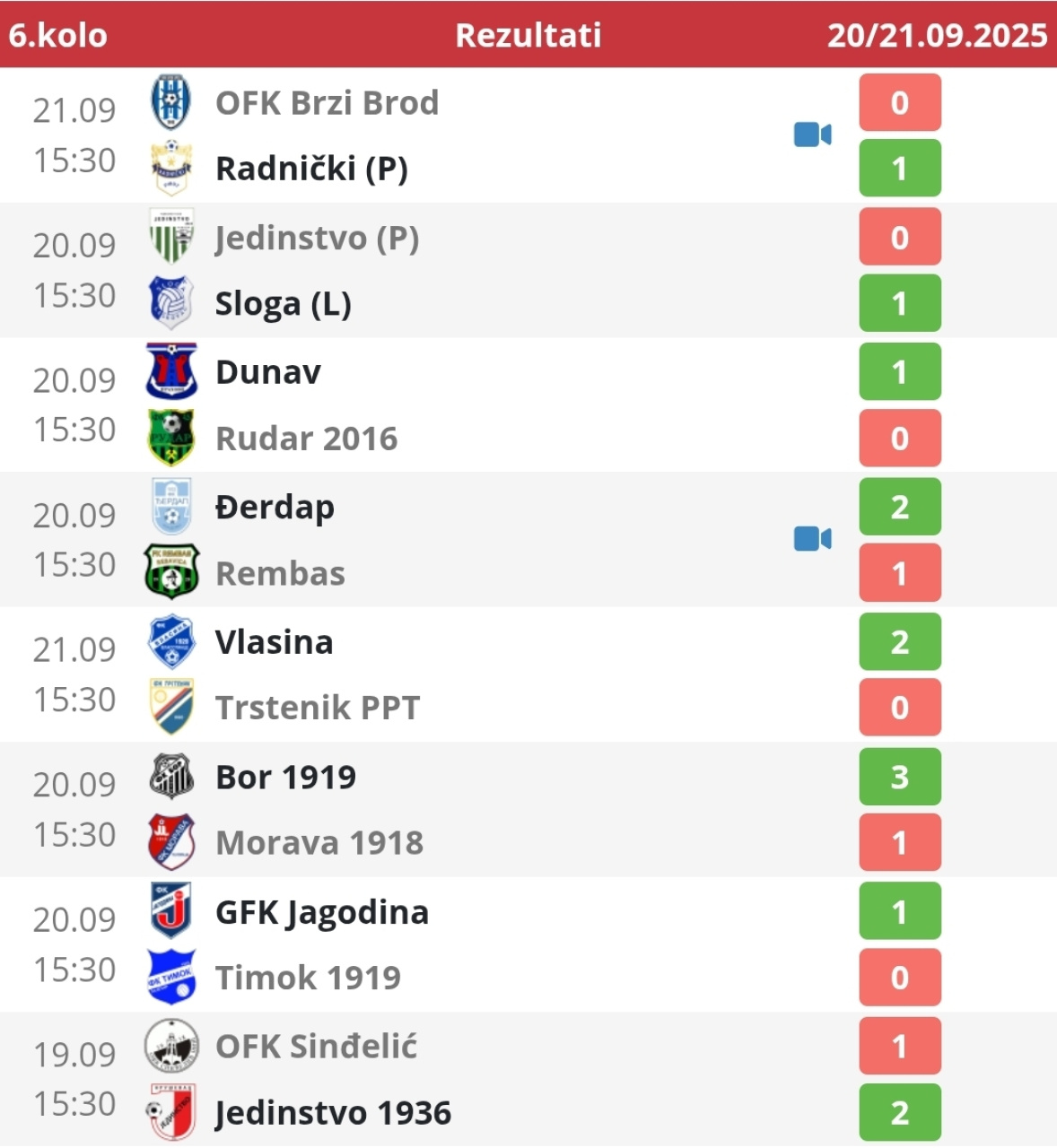 * Rezultati, tabela, sledeće kolo: srbijasport.net
