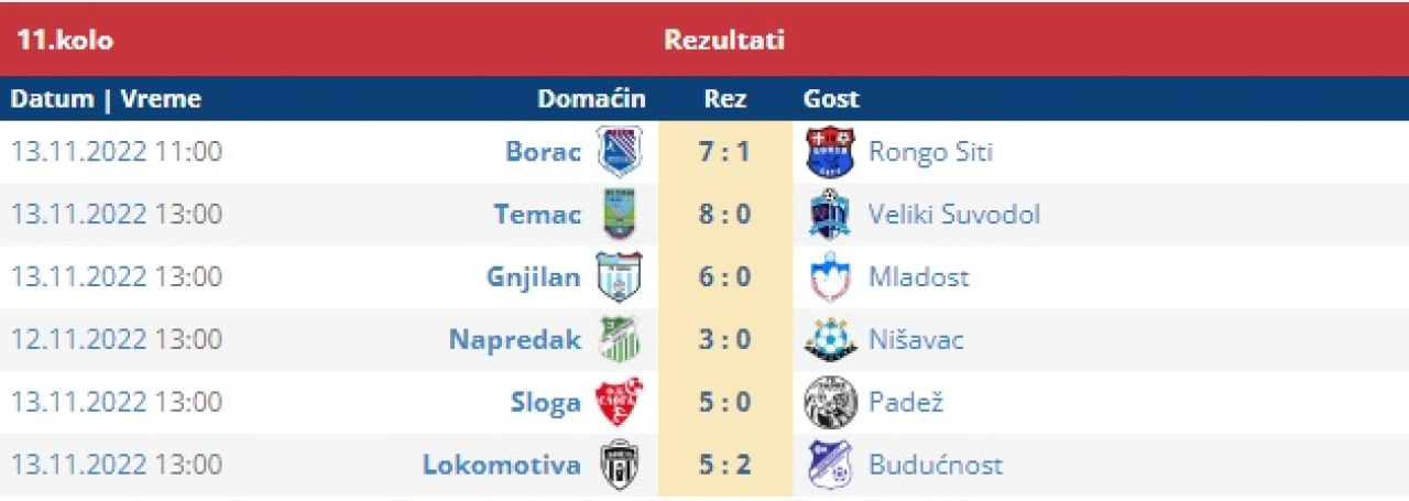 U narednom kolu Borac gostuje ekipi Ponor. Utakmica se igra u nedelju 20.11.2022. godine od 13.00 sati selu Blato. Ekipa Rongo siti dočekuje Temac iz Temske.