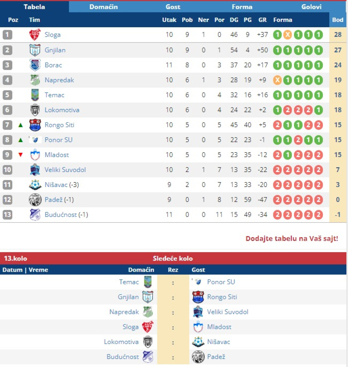 Sloga I Gnjilan ne samo da izmiču rivalima već I pune mreže protivnika. Borac Barje Čiflik se očigledno budi I igra sve bolje. Da li ćemo na proleće pratiti trku utroje!? Izvorci I Belopoljci igraju po principu ,,toplo hladno". U ovom kolu bili su uspešni.