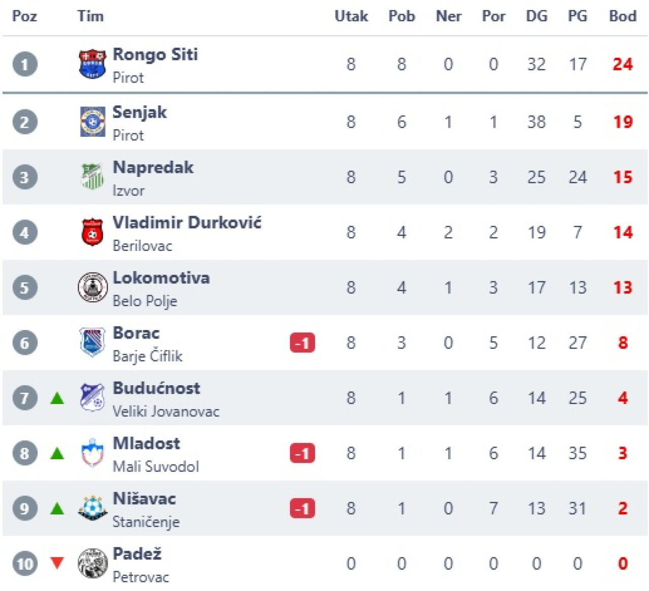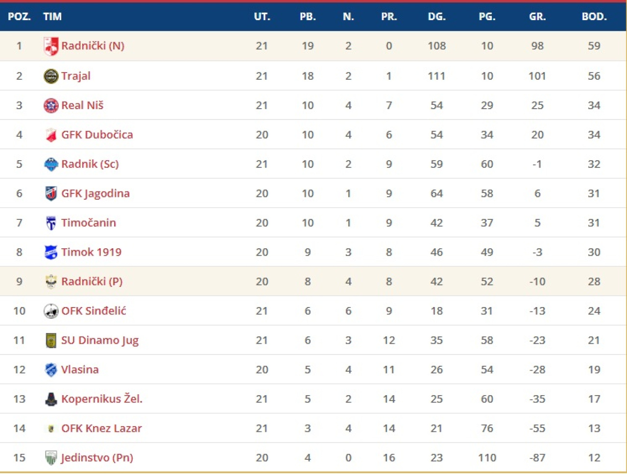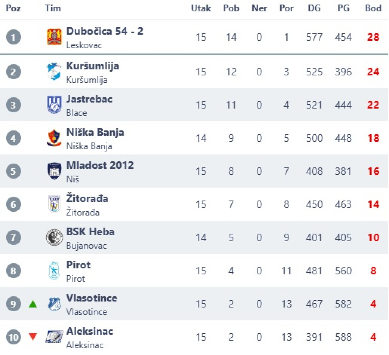 * Tabele: srbijasport.net i fsris.org.rs