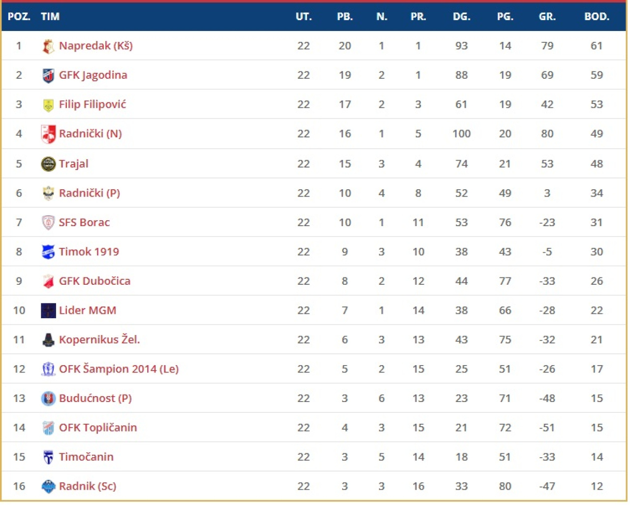 Omladinska liga, 22. kolo