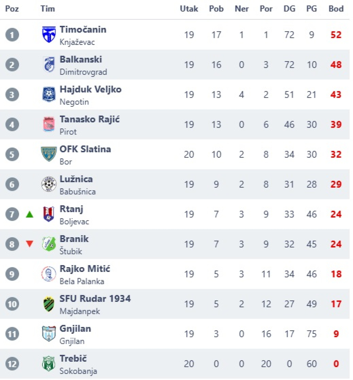 Zona Istok, 20. kolo