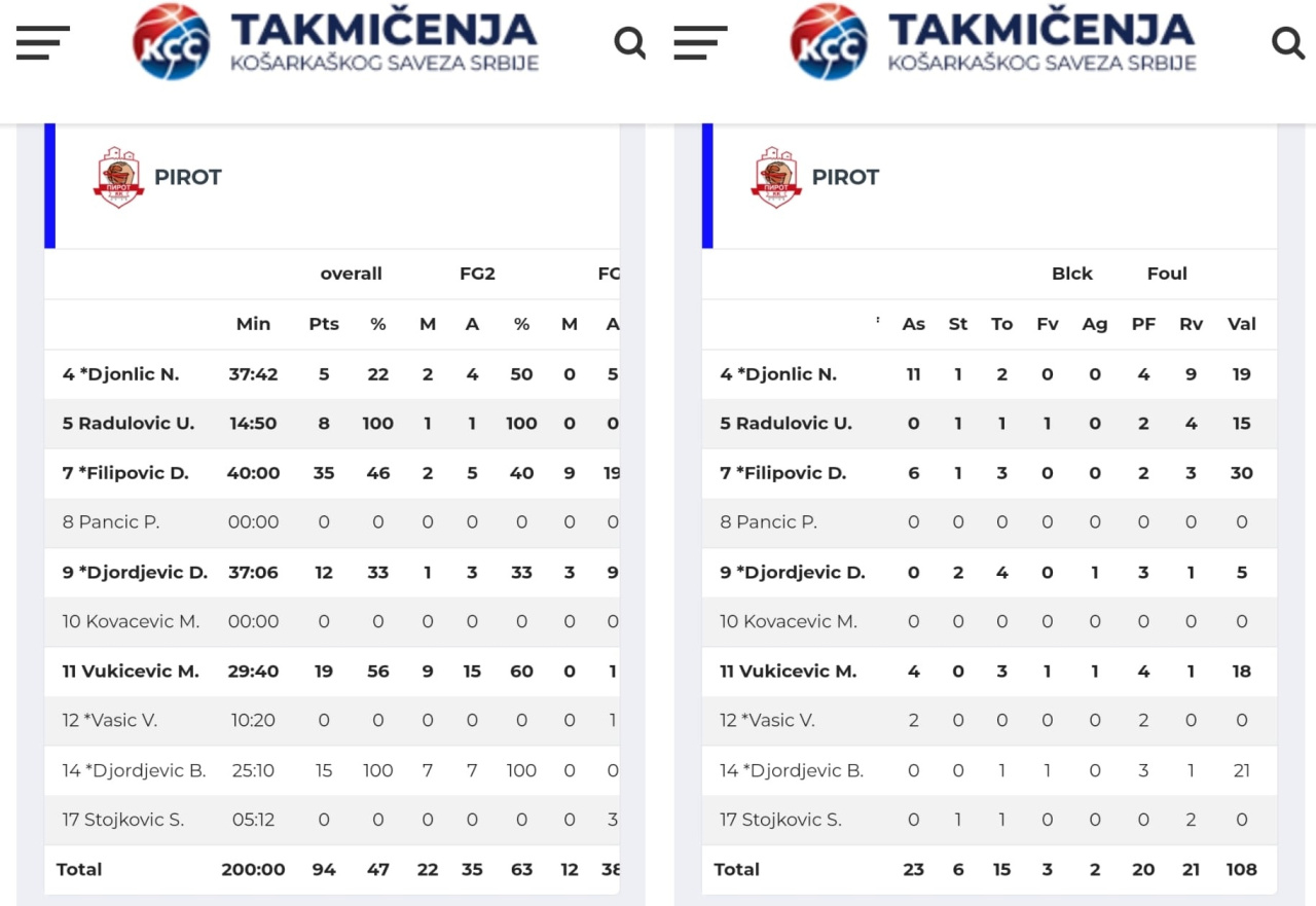 Gore, "glava" vam pokazuje kako je Pirot igrao po četvrtinama. Zamislite da gost u prvih 20 minuta primi čak 55 koševa, a ubaci svega 32.