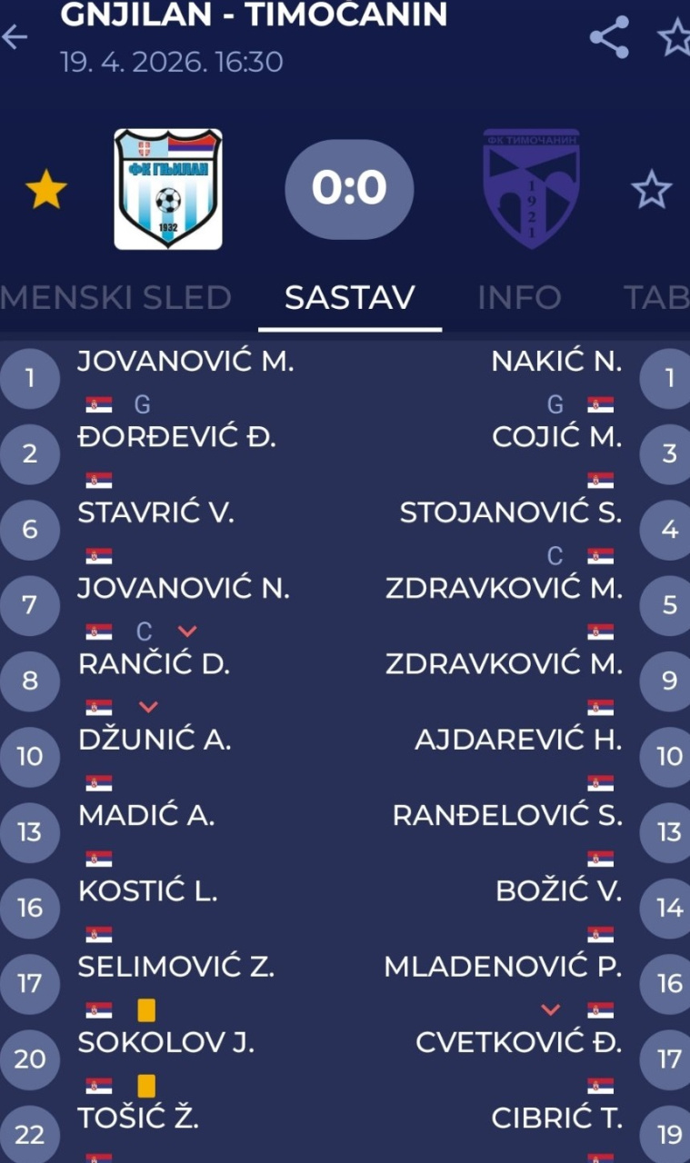 20. apr 2026. 13:13 Zona Istok, 20. koloStadion "Grbavica"Gnjilan: Gnjilan - Timočanin 0:0Čudo se dogodilo! Kandidat za plasman u Srpsku ligu, ekipa koja je najavila povratak i pre neki dan pobedila Timok u Kupu, ekipa ... -