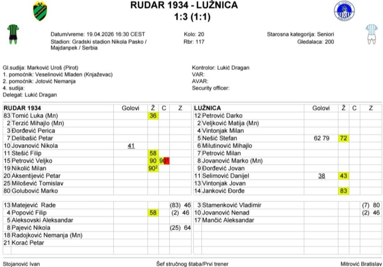 Majdanpek: SFU Rudar - Lužnica 1:3 (1:1)