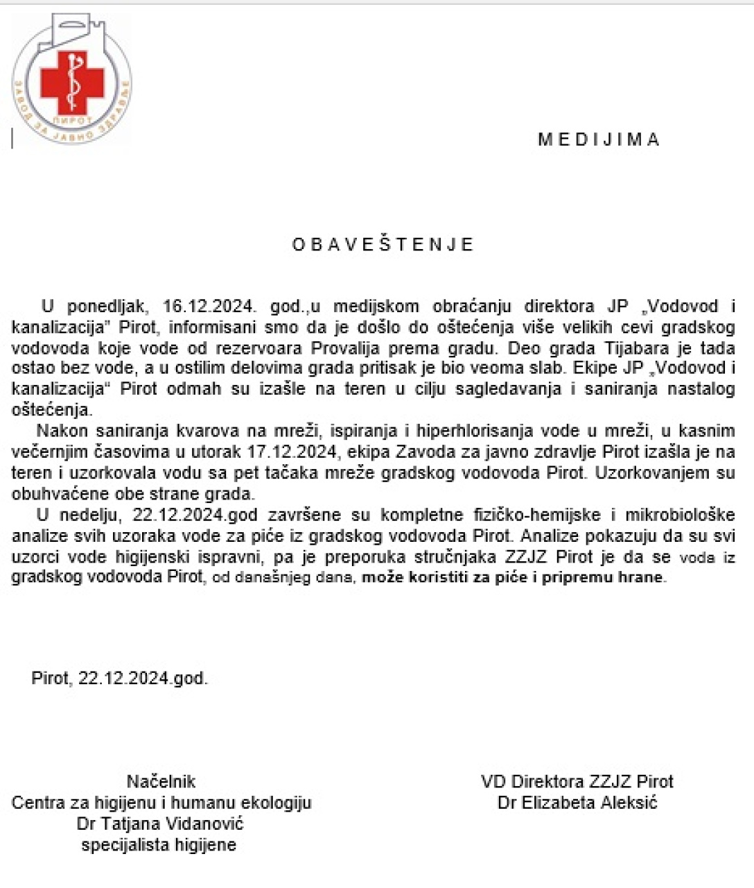 Zavod za javno zdravlje: SAOPŠTENJE!