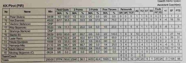 Aleksinac : Napredak - KK Pirot 101 : 98 (32:25, 18 :20, 20:25 , 13:13 ) produžetak : 10:10 , 8:5