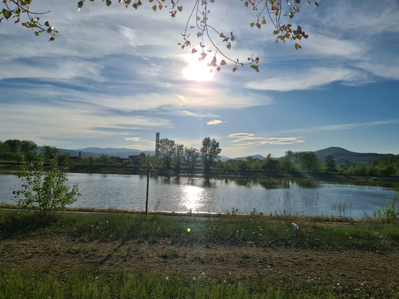 Oko bazena predivna slika. Sunce će uskoro preskočiti Belavu i Sarlah. Žalosne vrbe, zelenilo. Sve lepo. Dok ne obratite pažnju... A tada