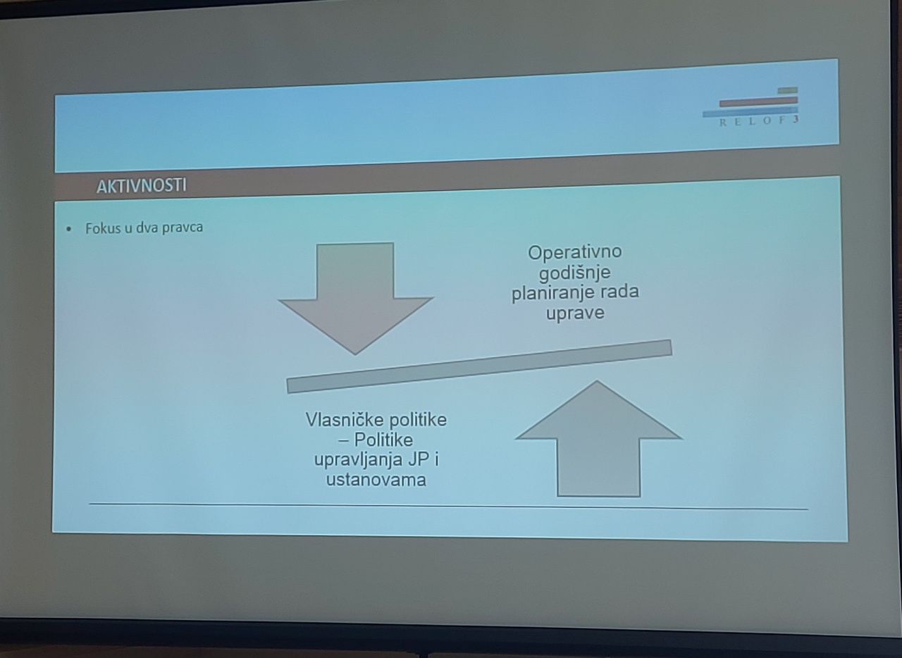 Prema rečima direktorke RELOF 3 projekta, u narendom periodu radiće na značajnom unapređenju interne revizije, ići će ka ozbiljnijem i jačem nadzoru nad javnim preduzećima i indirektnim budžetskim korisnicima, ka godišnjem planiranju rada uprave unutar uprave i ka uvođenju upravljanja putem performansi, odnosno, moći će da mere performanse svakog dela uprave.