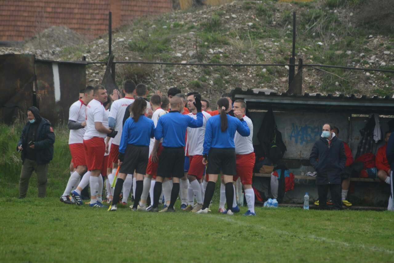 Domaći su krenuli ofanzivno od samog starta. Kao plod takve igre su neiskorišćene prilike domaćeg igrača Aleksića. Par puta je maestralno intervenisao i gostujući vratar Janković. Prvi pogodak je viđen u 35.minutu. Strelac je bio Gogov posle udarca sa ivice kaznenog prostora.Janković je paradom samo ulepšao pogodak Gogova.Gosti se bude i ne koriste svoje šanse preko Jovanovića i Milanova A. I kada se očekivao kraj prvog dela susreta domaći postižu drugi pogodak.Strelac pogodka je bio S.Manojlović nekadašnji igrač Radničkog iz Pirota na dobro poznati način,levicom sa tridesetak metara.Drugi deo meča je protekao na isti način.Domaći napadaju ali ne realizuju svoje prilike. Do kraja meča pogodaka nije bilo. Na kraju zaslužena pobeda domaćih koja ih ostavlja u trci za prvo mesto i borbu za ulazak u Okružnu ligu Pirot. Sudija Lukić sa pomoćnicima Ristićem i Markovićem je dobro obavio svoj deo posla na ovoj fer i korektnoj utakmici.