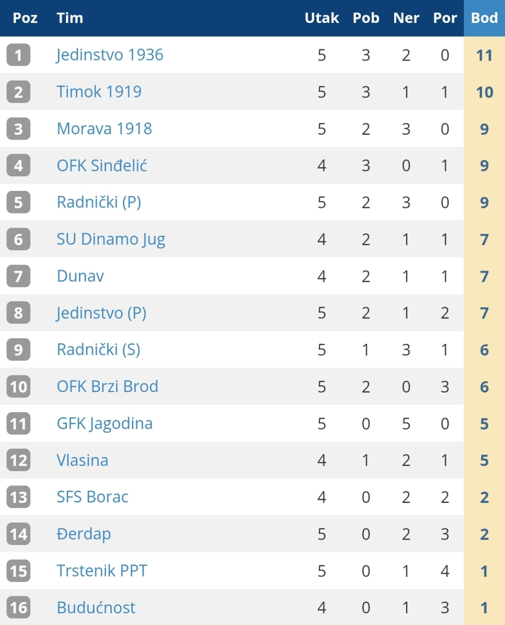 Srpska Liga Istok, 5. kolo