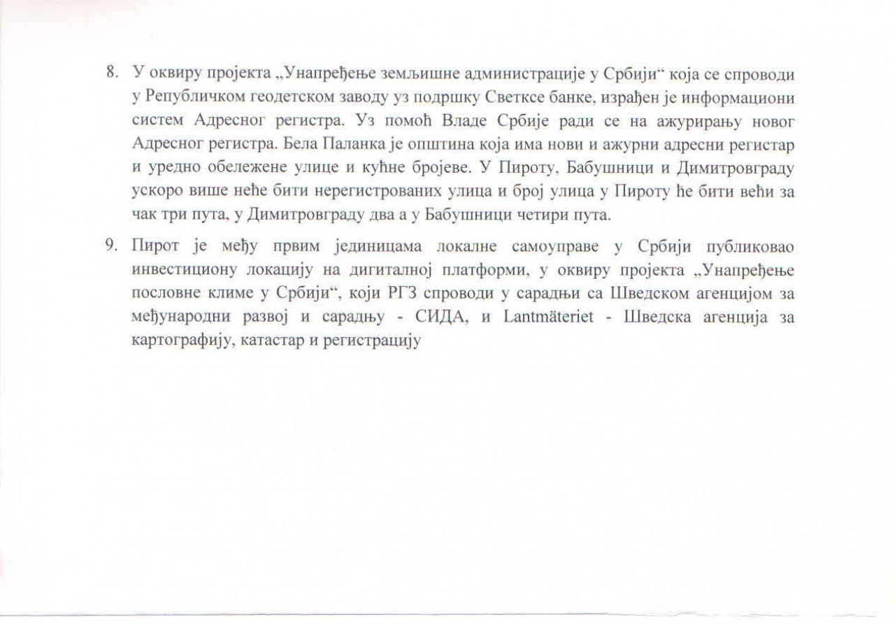 Glavna zapažanja Republičkog geodetskog zavoda koja se tiču Pirotskog okruga su sledeća: