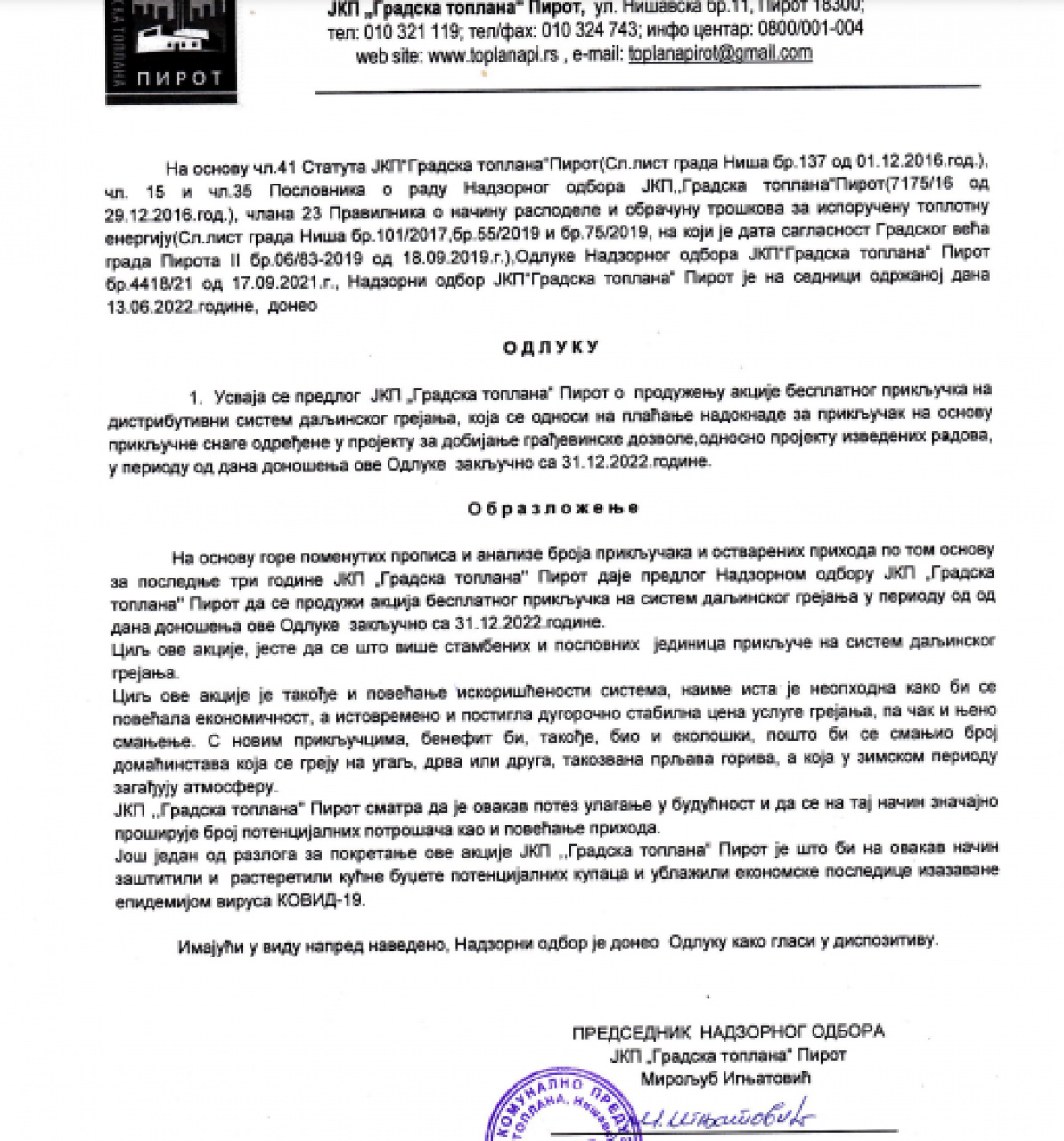 Takodje, iz Toplane poručuju i da je akcija "Besplatan priključak" produžena do kraja 2022.godine, sa ciljem da se što više stambenih i poslovnih jedinica priključe na sistem daljinskog grejanja i tako se poveća iskorišćenost sistema.