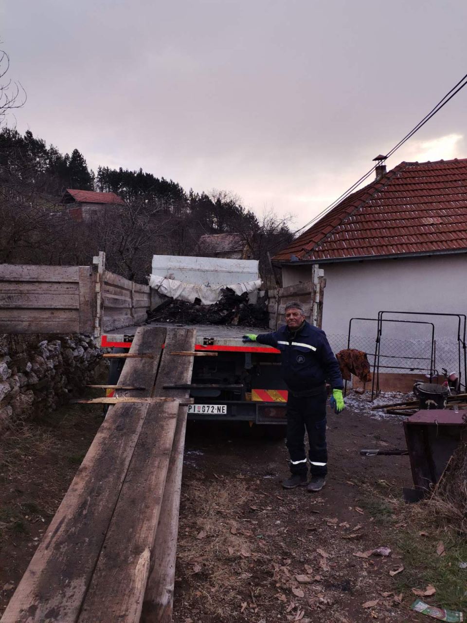 U želji da pomognu jedanaestočlanoj porodici, poslata su dva radnika da očiste ostatke požara. Poslat je i kamion kojim je sve sa zgarišta prebačeno na Deponiju.