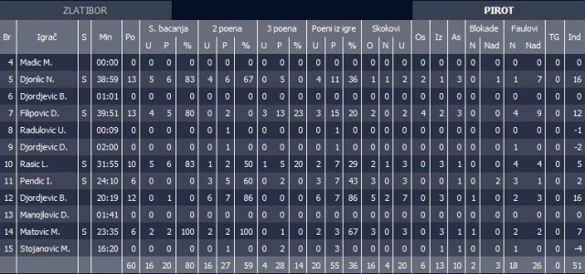 Meč protiv dobro plaćene ekipe, koja ima ,,skupe ambicije,, zašto da ne, nije se mogao ni bolje ni više, sa šest igrača u rotaciji i neverovatnim brojem promašaja za tri poena, što je često do sada bilo glavno ,,pirotsko oružje,,! Mislim da je Zlatiborcima laknulo!