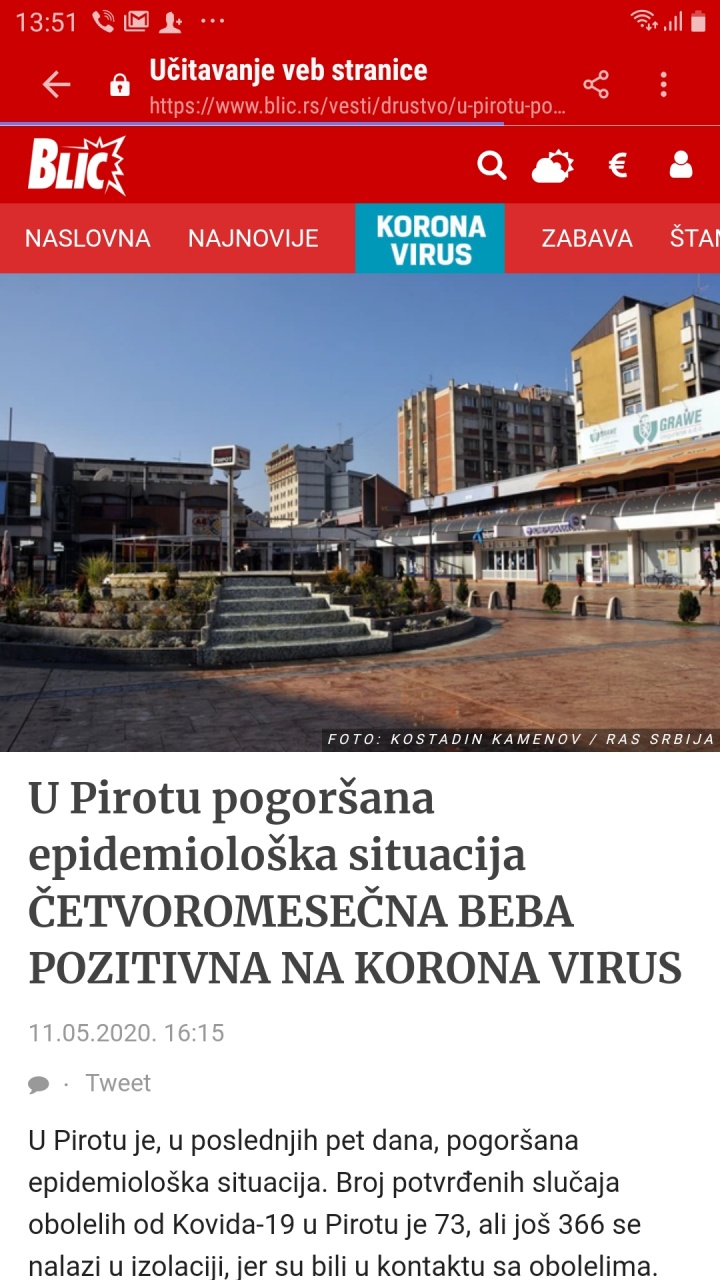 Блиц: У Пироту погоршана епидемиолошка ситуација четворомесечна беба позитивна на корона вирус