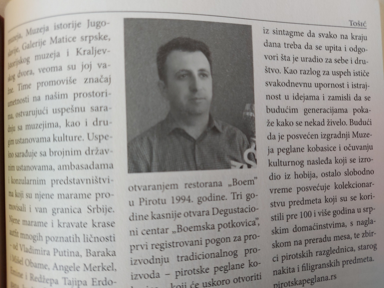 Dalibor Tošić, vlasnik Degustacionog centra “Boemska potkovica” i proizvođač pirotske šeglane kobasice, kaže da mu je drago što se našao među istaknutim Srbima da je to potvrda njegovog rada.