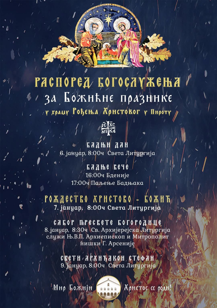 Raspored bogosluženja u pirotskim hramovima: