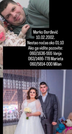 21. jan 2026. 12:56 Članovi porodice mole: ukoliko ste videli ili nešto znate o nestalom Marku Đorđeviću, javite se!Marko je nestao noćas (utorak na sredu) u 01,10h.Pozovite na brojeve: 060/1636-555 Vanja, 063/... -
