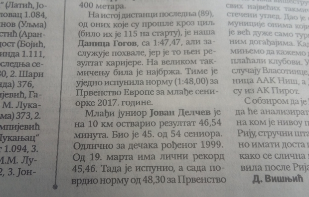 Danica Gogov ostvarila je normu za Evropsko prvenstvo mladjih seniorki do 23 godine, postigavši vreme 1.47.47 sto je ujedno i drzavni rekord!!!.