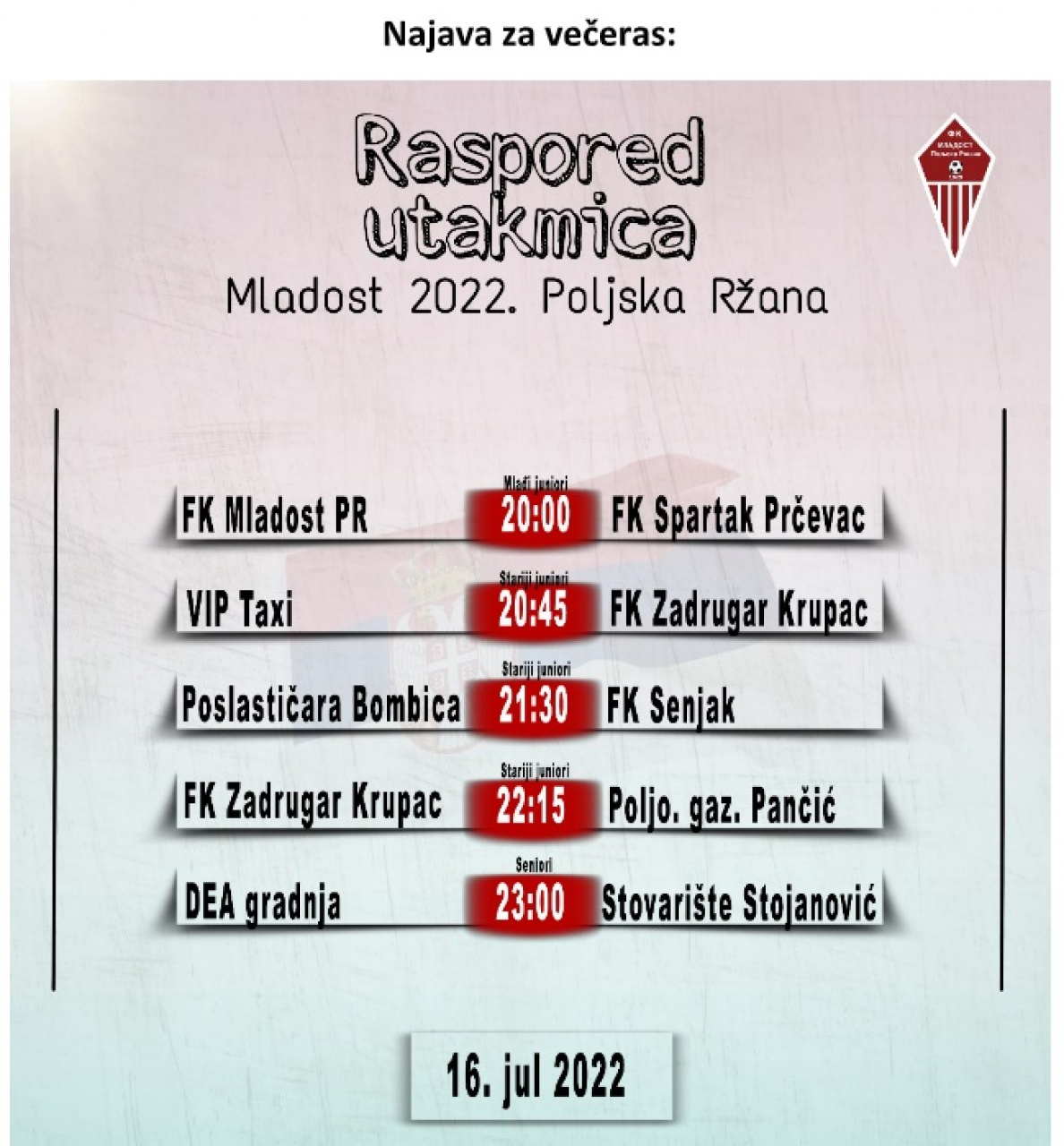 29. apr 2026. 10:19 Mlađe selekcije Radničkog igrale su i ovog vikenda. Po običaju, nismo dobili informacije iz Radničkog. Pisali smo predsedniku, administraciji, ali bez odgovora. Ovo činimo zbog dece i roditelja. Zbog ... -