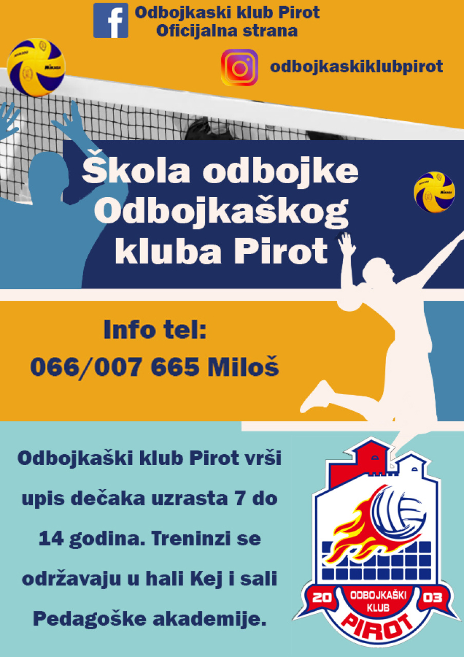 Povodom 22. godine postojanja Obojkaški klub Pirot vrši upis novih članova, dečaka uzrasta od 7 do 14 godina.