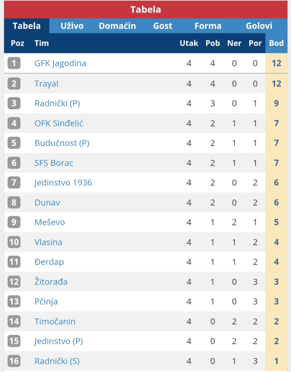 Popovac: Budućnost - Radnički 2:4 (0:1)
