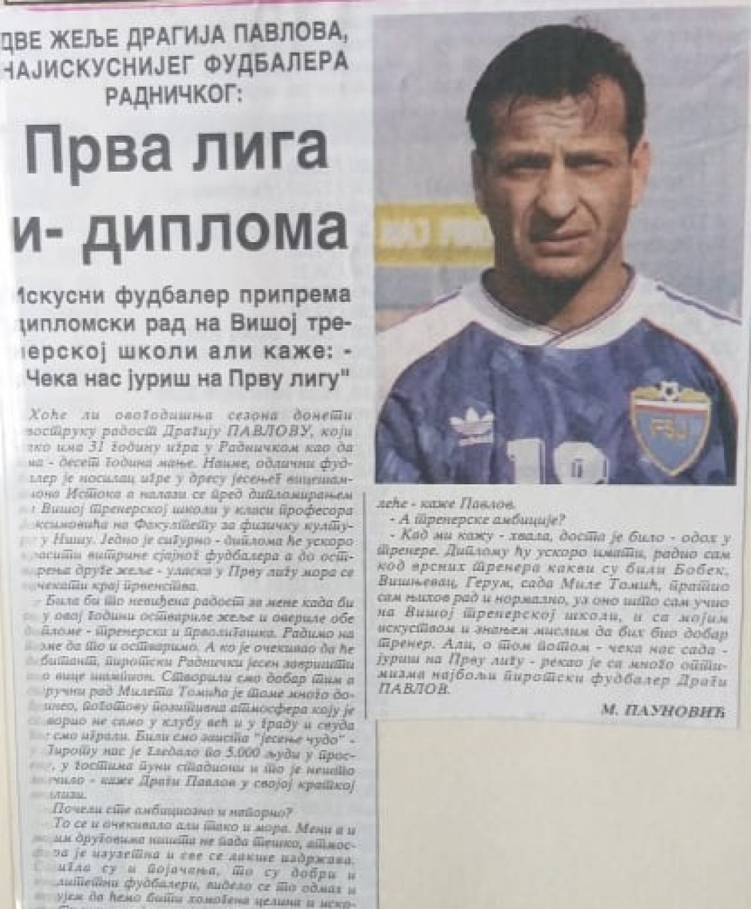 Pre neki dan razgovarao sam sa Markom Djordjevskim, mladim fudbalerom, koji je, kao i Dragi, krenuo na dug fudbalski put iz Vardara. Poželeo sam mu da bude kao Dragi Pavlov. Mlad je, malo zna o Dragiju.