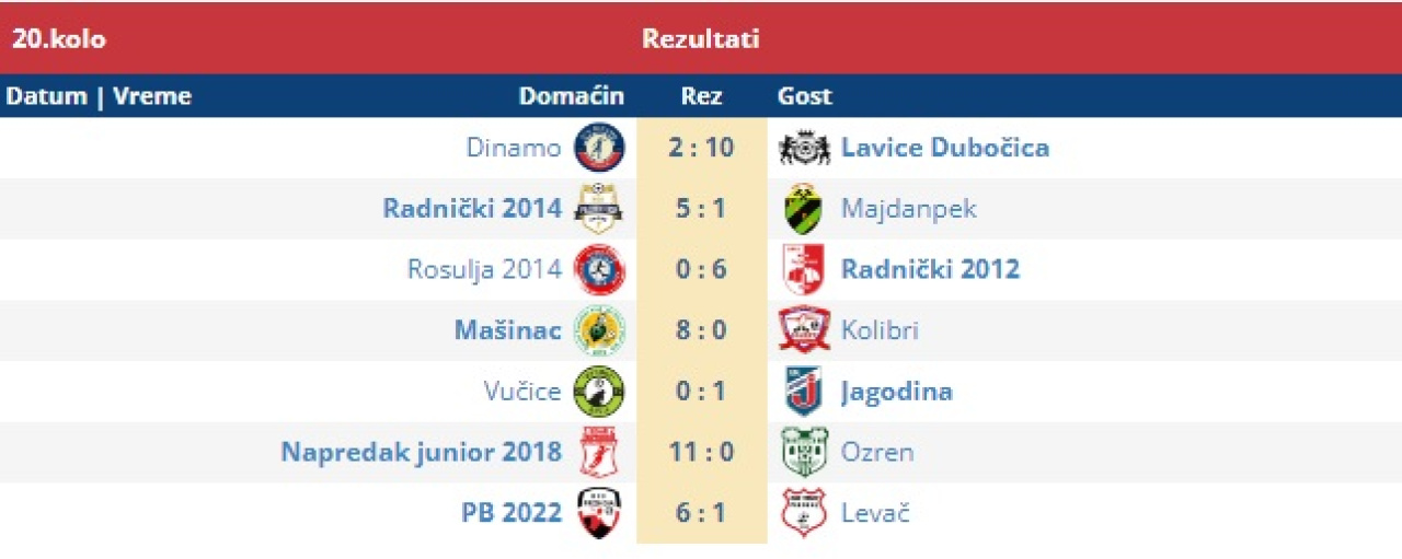 15. nov 2025. 18:28 Srpska liga Istok, 14. koloKruševac: Jedinstvo - Radnički 3:2Radnički: Mirković (Ristić), Antić, Nedeljković, Tanasijević, Petrov (Stanković), Mladenović, Ristov (M. Stanković), Đorđević, N. ... -
