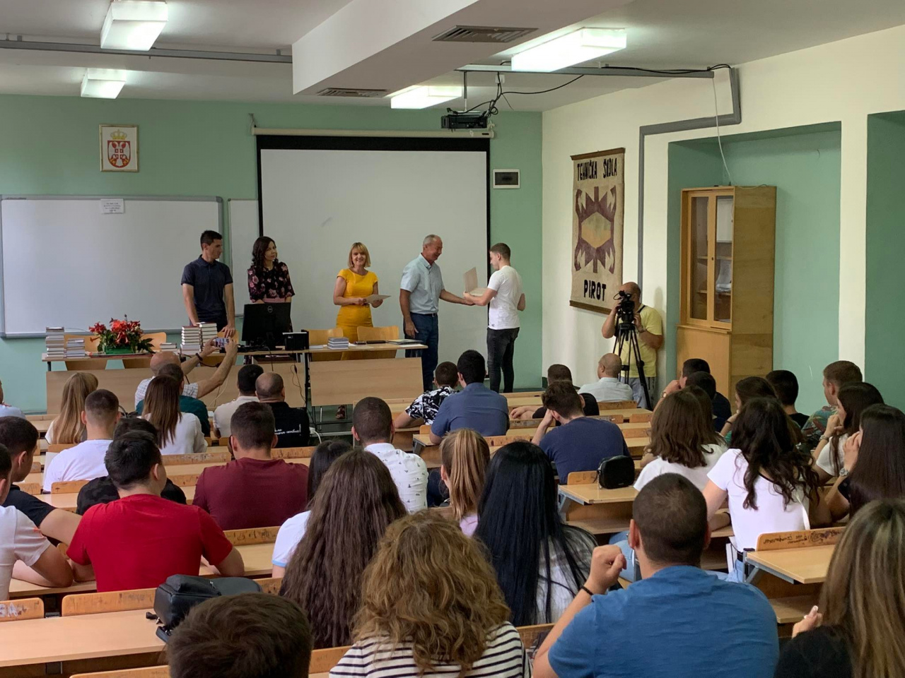 U amfiteatru Tehničke škole, danas su podeljene diplome, knjige i vaučeri najboljim učenicima završnih razreda, učenicima koji su učestvovali na takmičenjima, Vukovcima i onima koji su imali najbolje Maturske radove.