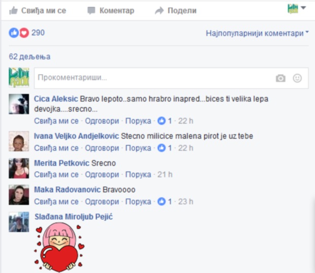 U komentarima na našem Portalu, tviteru i fejsbuku očitava se raspoloženje naših sugradjana i njihove iskrene želje da se naša devojčica osmehom vrati kući u Pirot! To svi iskreno želimo!