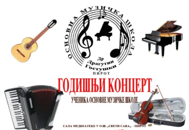 07. jun 2017. 08:00 Osnovna muzička škola „Dr Dragutin Gostuški“ iz Pirota, sa svojim izvojenim odeljenjem u Dimitrovgradu, danas, 7. juna organizuje godišnji koncert svojih učenika. Koncert će se održati u sali ... -
