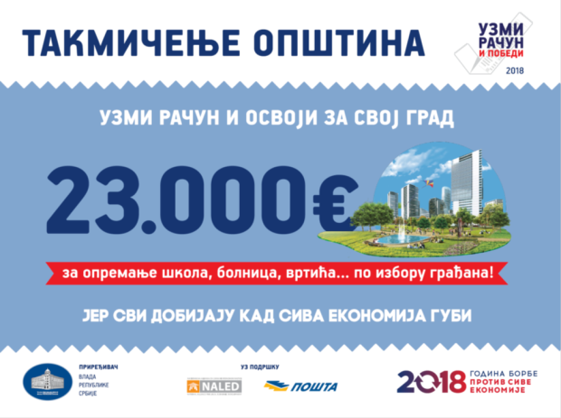 Istovremeno se održava i takmičenje opština i gradova u broju prikupljenih fiskalnih računa i slipova, a devet najaktivnijih lokalnih zajednica biće nagrađene sa po 23.000 evra.