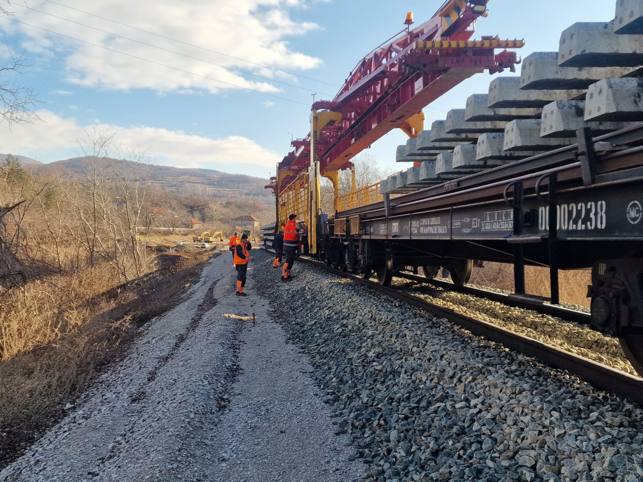 Nekoliko stotina metara dalje, tamo kod Sopotskog Hana, radni voz i zemljani radovi i priprema za postavljanje pragova.