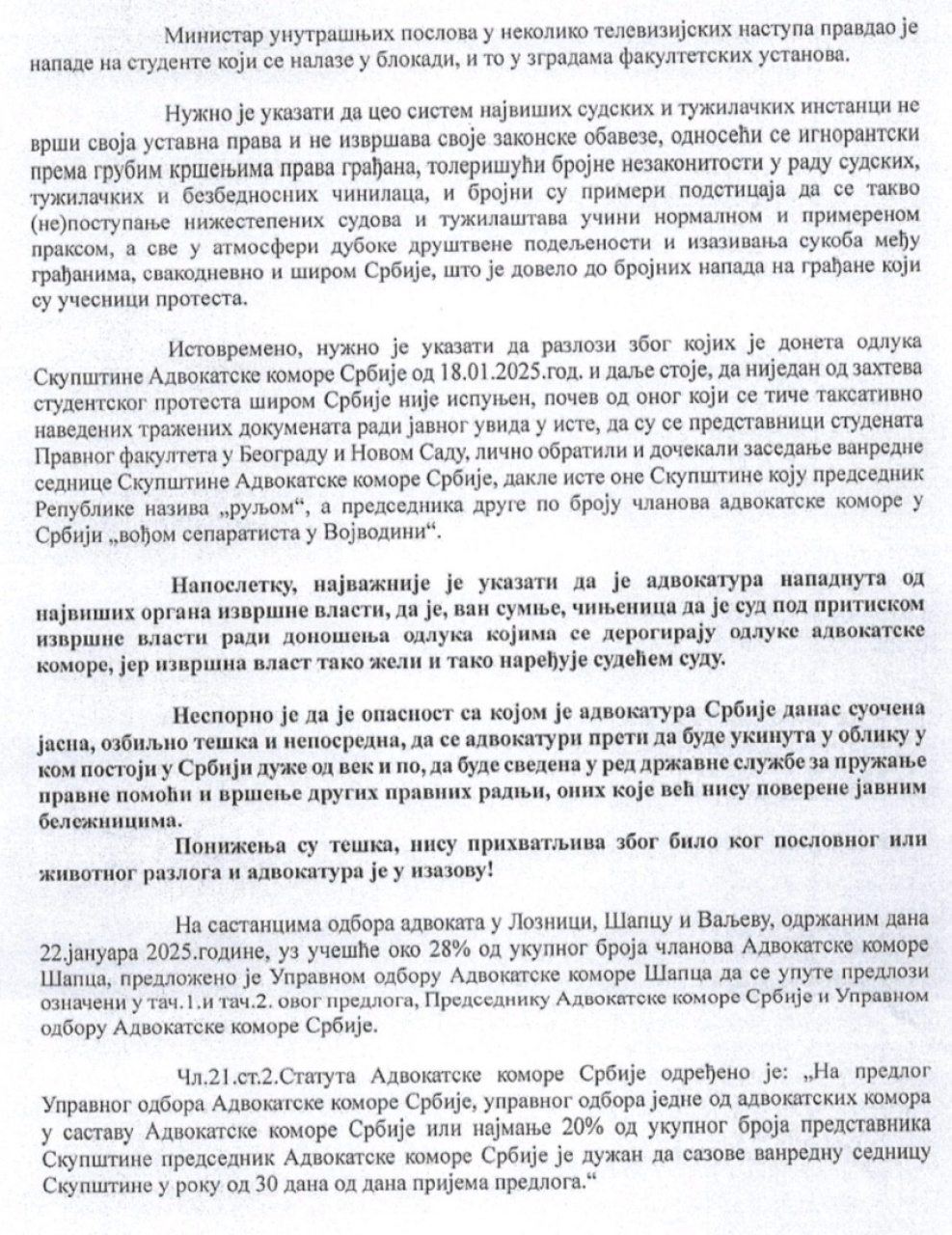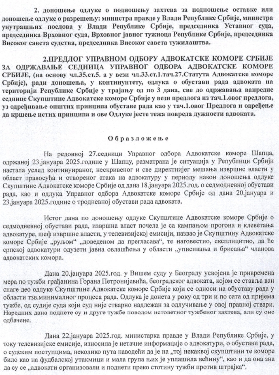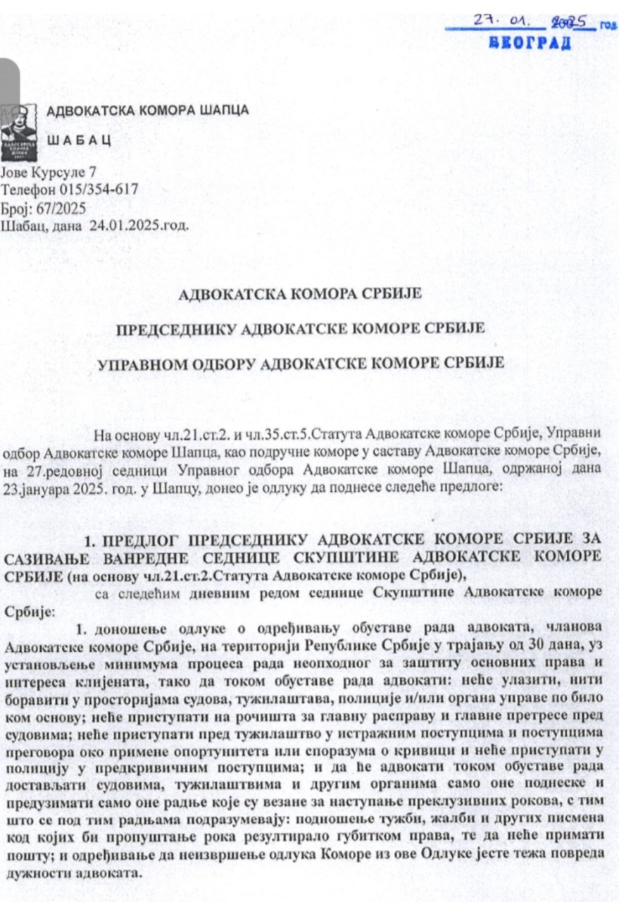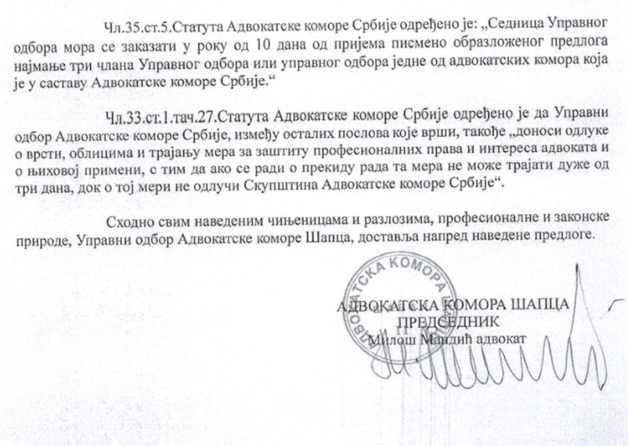 EKSKLUZIVNO: Usvojen predlog Advokatske Komore Šapca o obustavi u trajanju od 30 dana