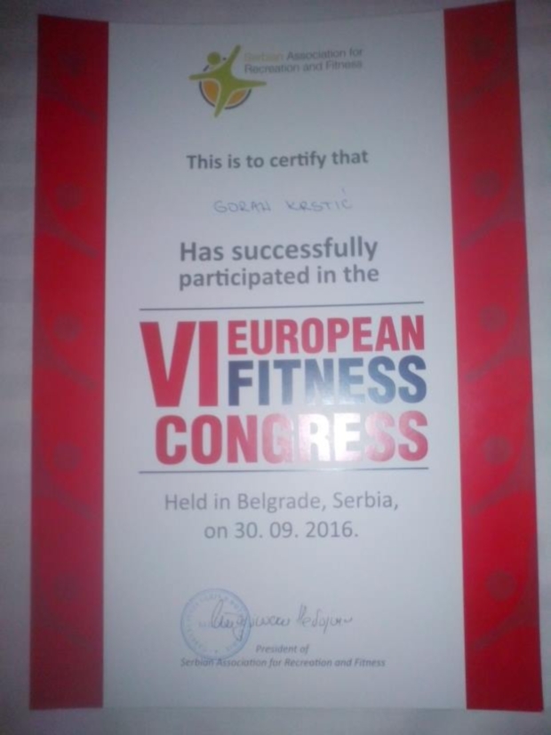 Trener Kik boks kluba "Crna Kobra" Goran Krstić učestvovao je na 6.Evropskom fitnes kongresu koji je održan 30.oktobra u Zemunu u sali opere i teatra Madlenijanum u organizaciji Saveza za rekreaciju i fitnes Srbije.