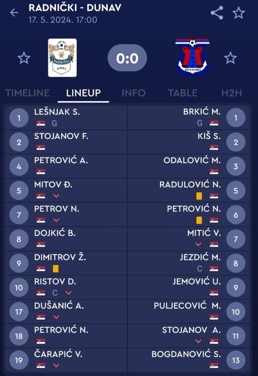 Izmene: Mančić - Čarapić (46. minut), Dusanić - Stojev (46. minut), Mitov- Kamenović (54. minut), Petrov - M. Stojanović (76. minut), Ristov - Tošić (77. minut);