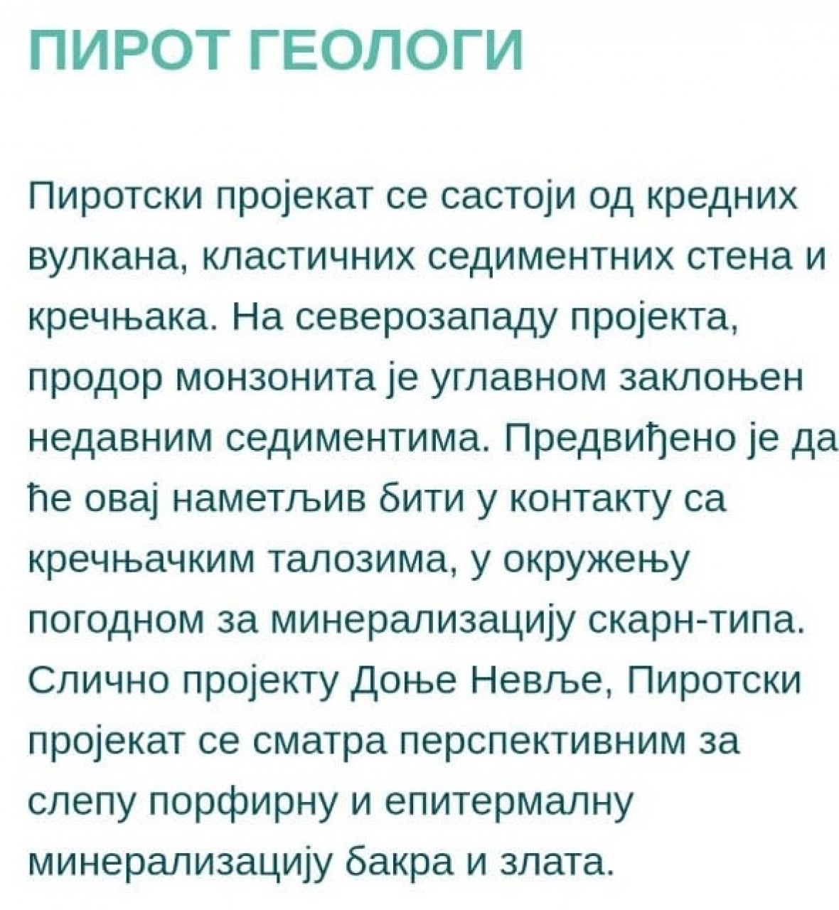 Na konferenciji je dr Todorović izneo određene informacije vezane za geološka istraživanja u cilju otvaranja rudnika bakra i zlata u neposrednoj blizini Pirota.