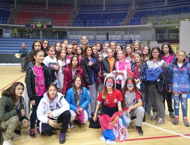 Stotinak članica našeg kluba sa trenerima i funkcionerima kluba pružile su podršku našim reprezentativkama. Bila je ovo jedinstvena prilika za naše male košarkašice da se nakon utakmice druže sa reprezentativkama, sestrama Milicom i Anom Dabović i Sonjom Petrović, kao i da se sa njima slikaju i od njih dobiju autograme.