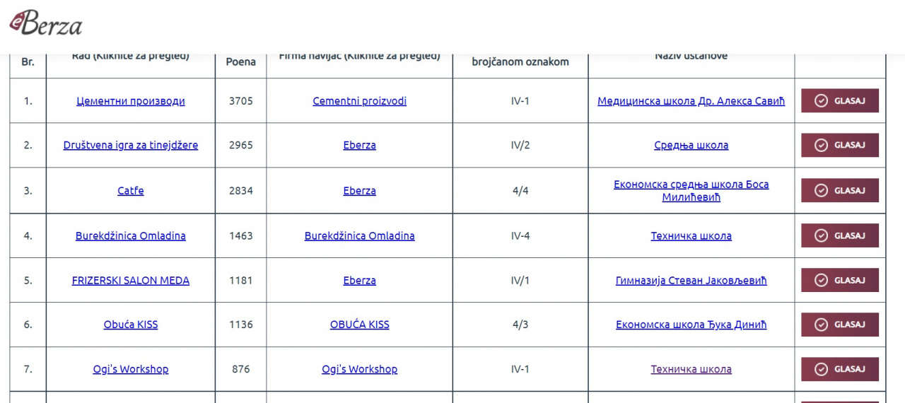 Način glasanja: na linku koji vam prosleđujem nađite Tehničku školu i Ogi's workshop (Ogijeva radionica na srpskom), kliknite na glasaj, logovanje ide preko fejsbuka (šifre se nigde ne pamte) i zatim kliknite na glasaj. Ukoliko je potrebno, link prvo kopirajte u pretraživač pa odatle glasajte.