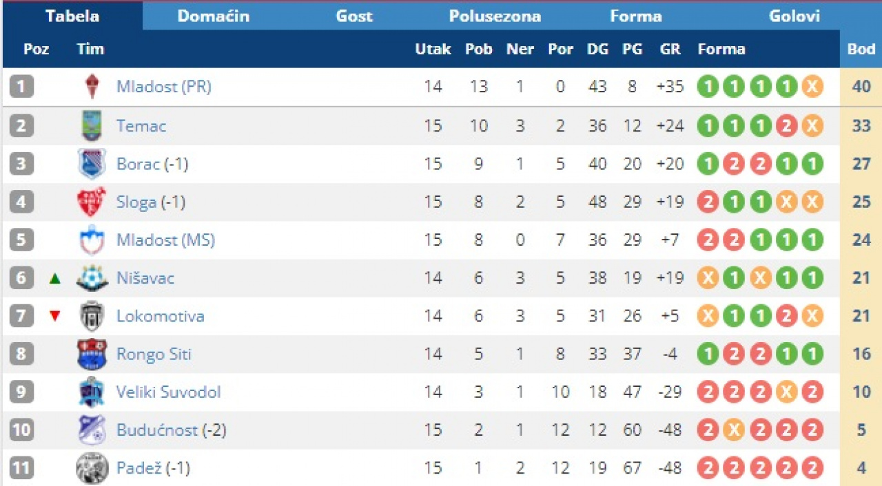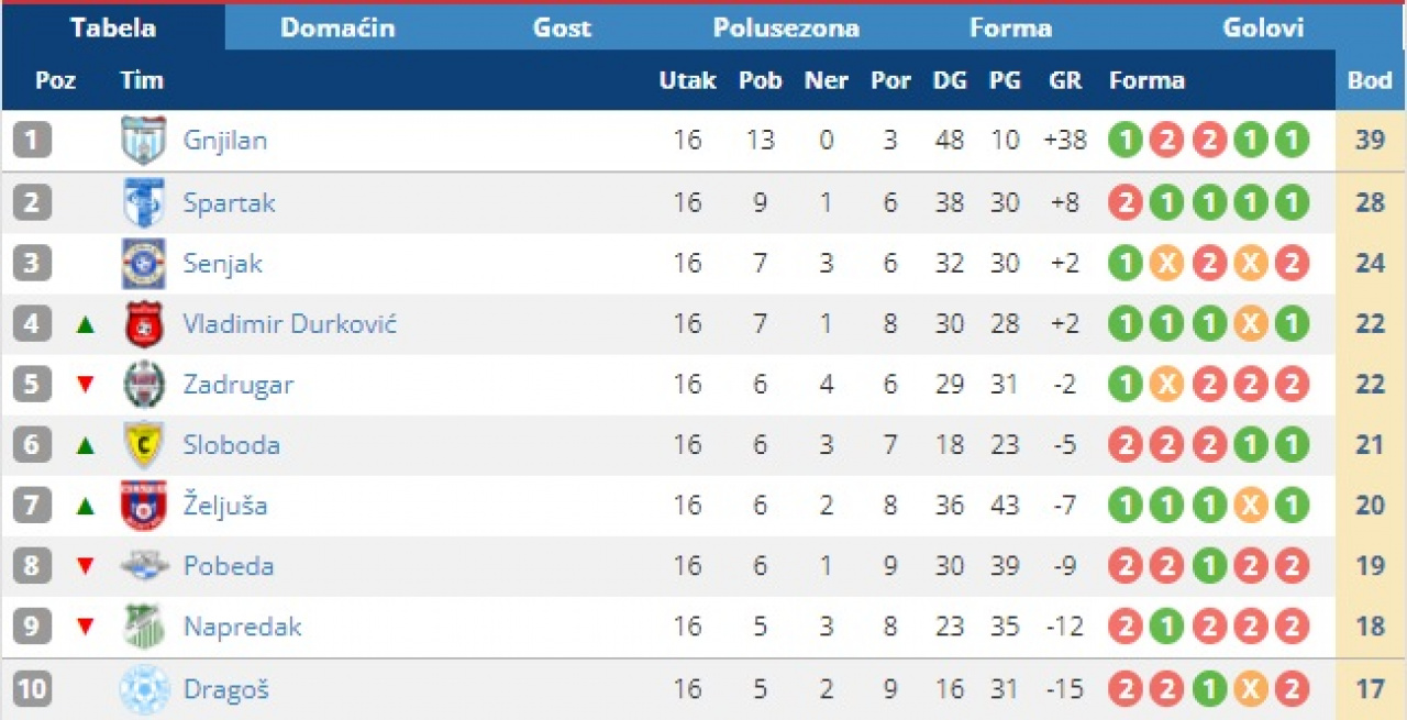 Ekipa Dragoša je poslednja na tabeli i sve je bliža Gradskoj ligi, dok se ekipa Slobode grčevito bori za opstanak sa ostalim ekipama u donjem delu tabele Okružne lige Pirot.
